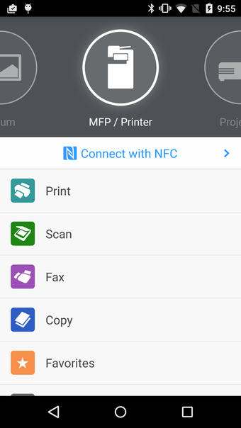 الطابعات متعددة الوظائف وجهاز العرض التي تدعم NFC متوافقة مع تطبيق موصِّل أجهزة ريكو الذكي.